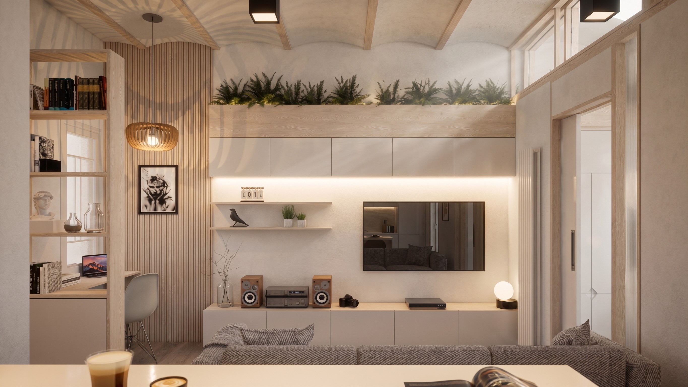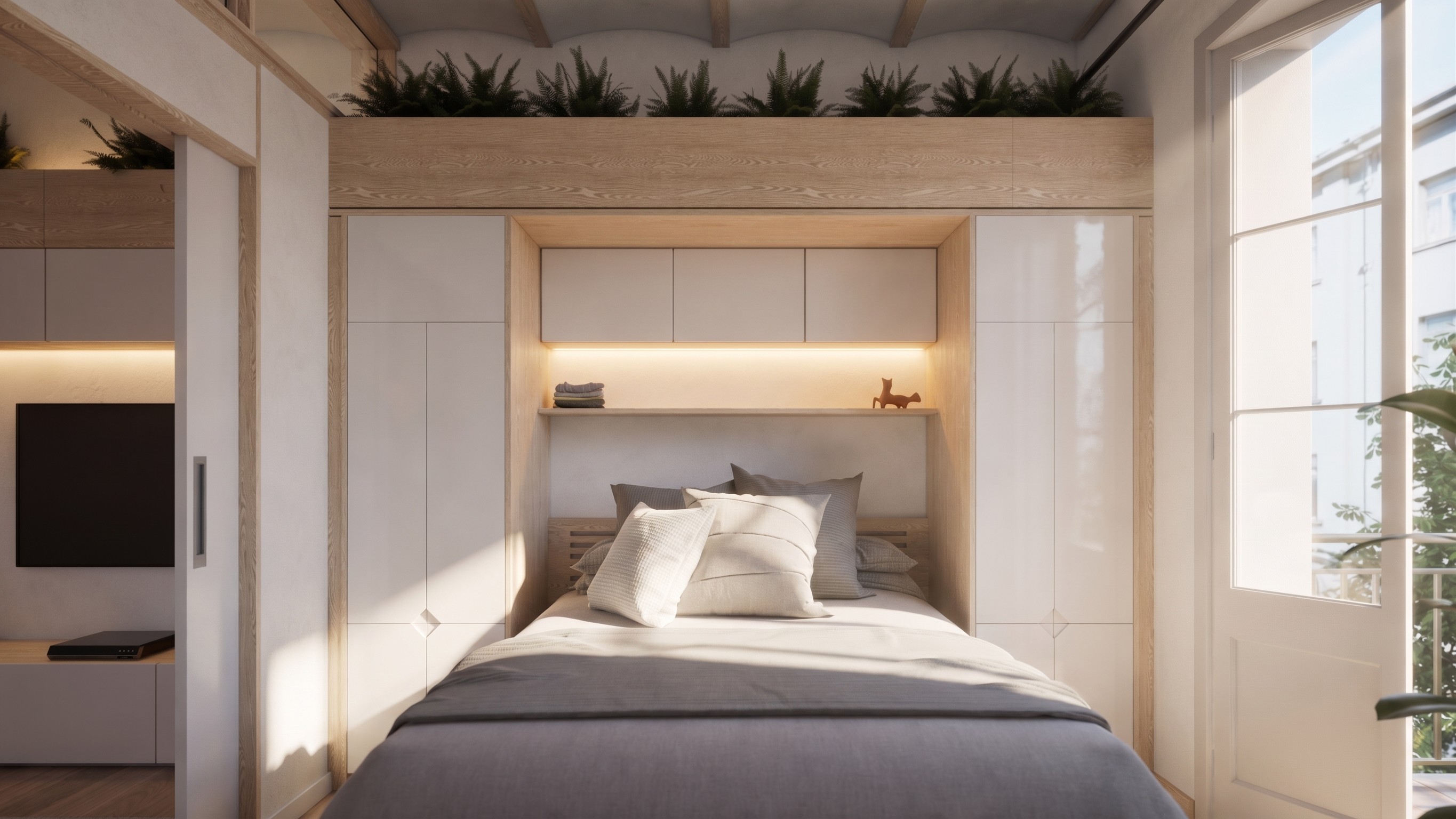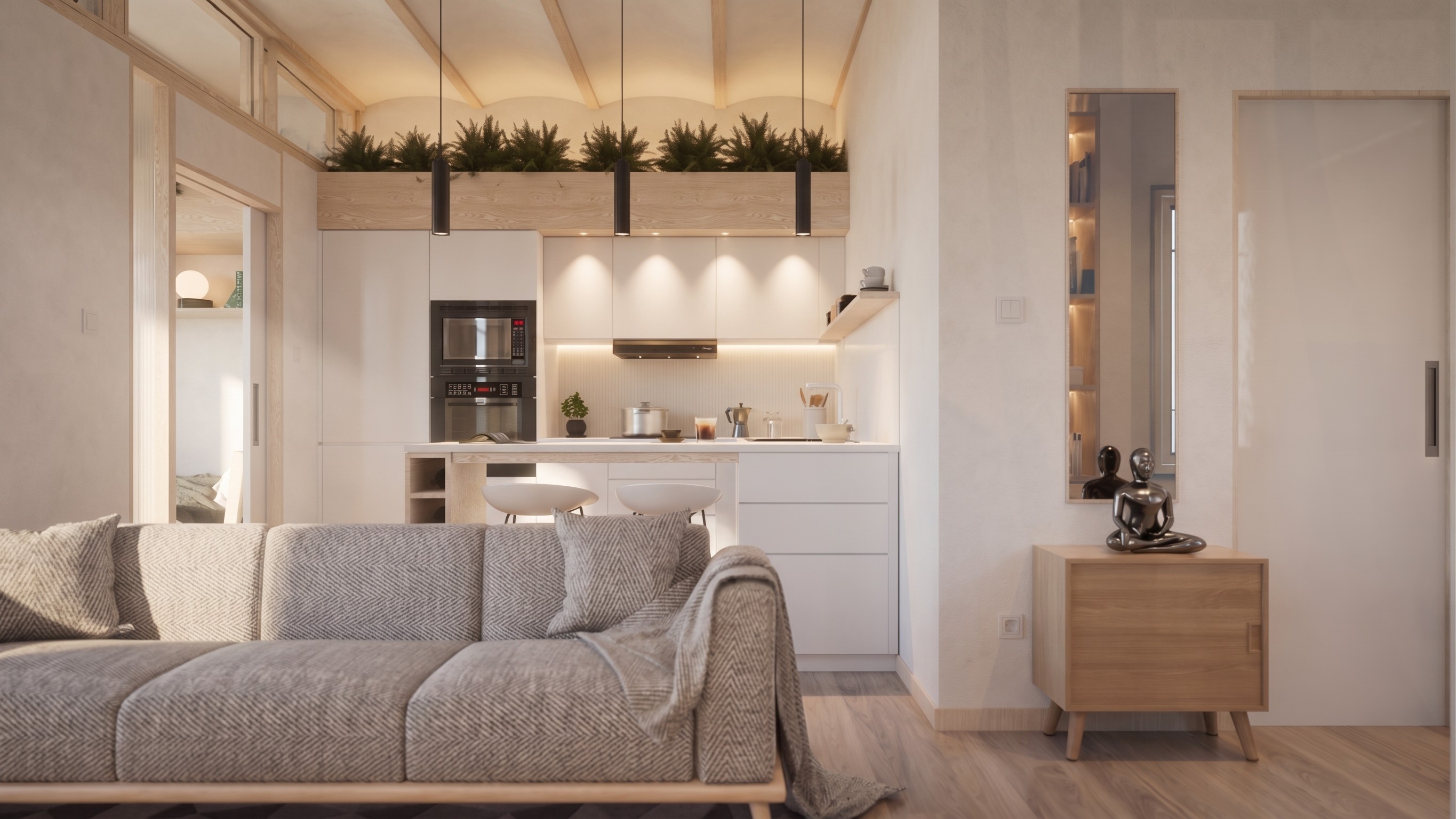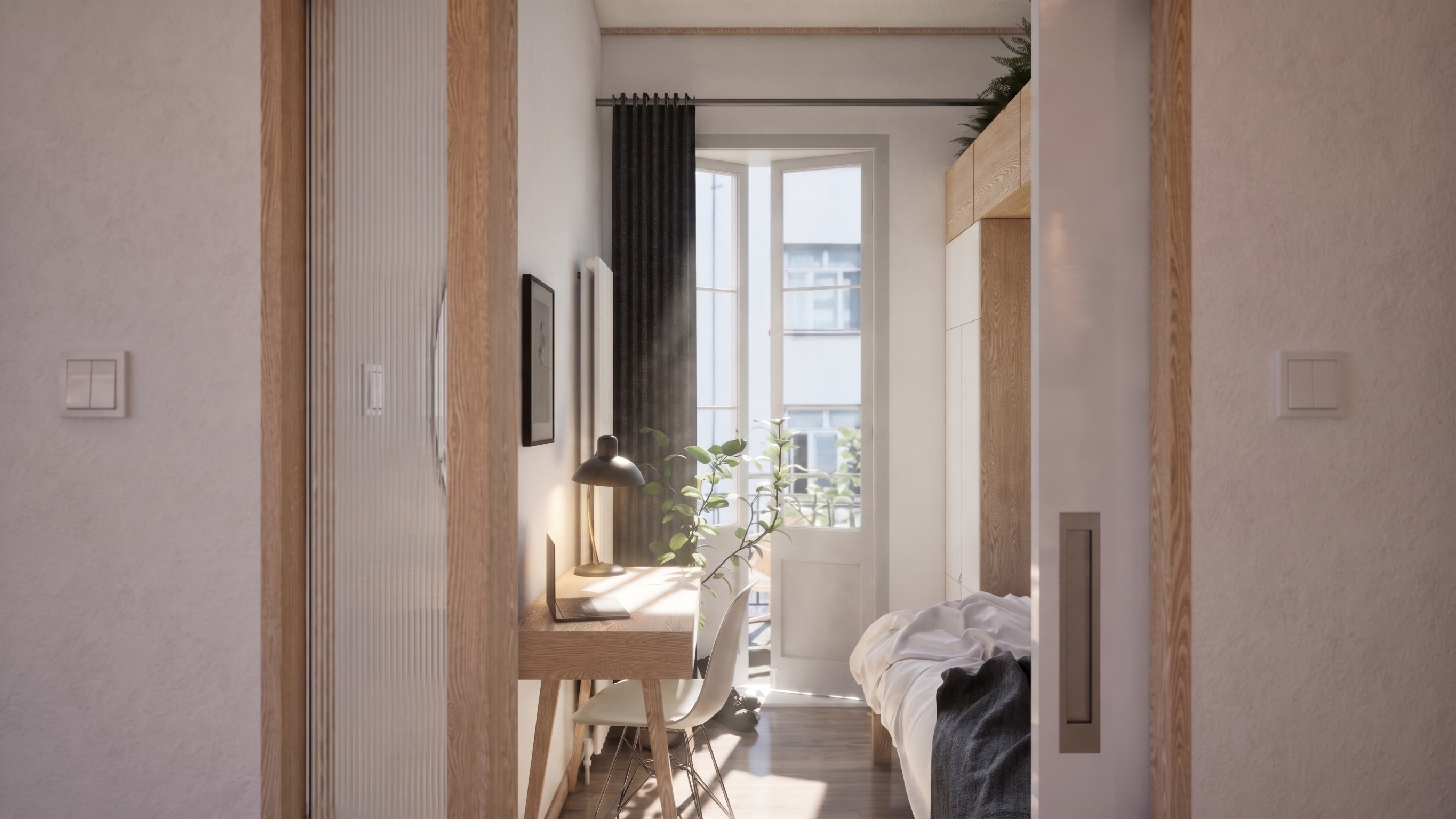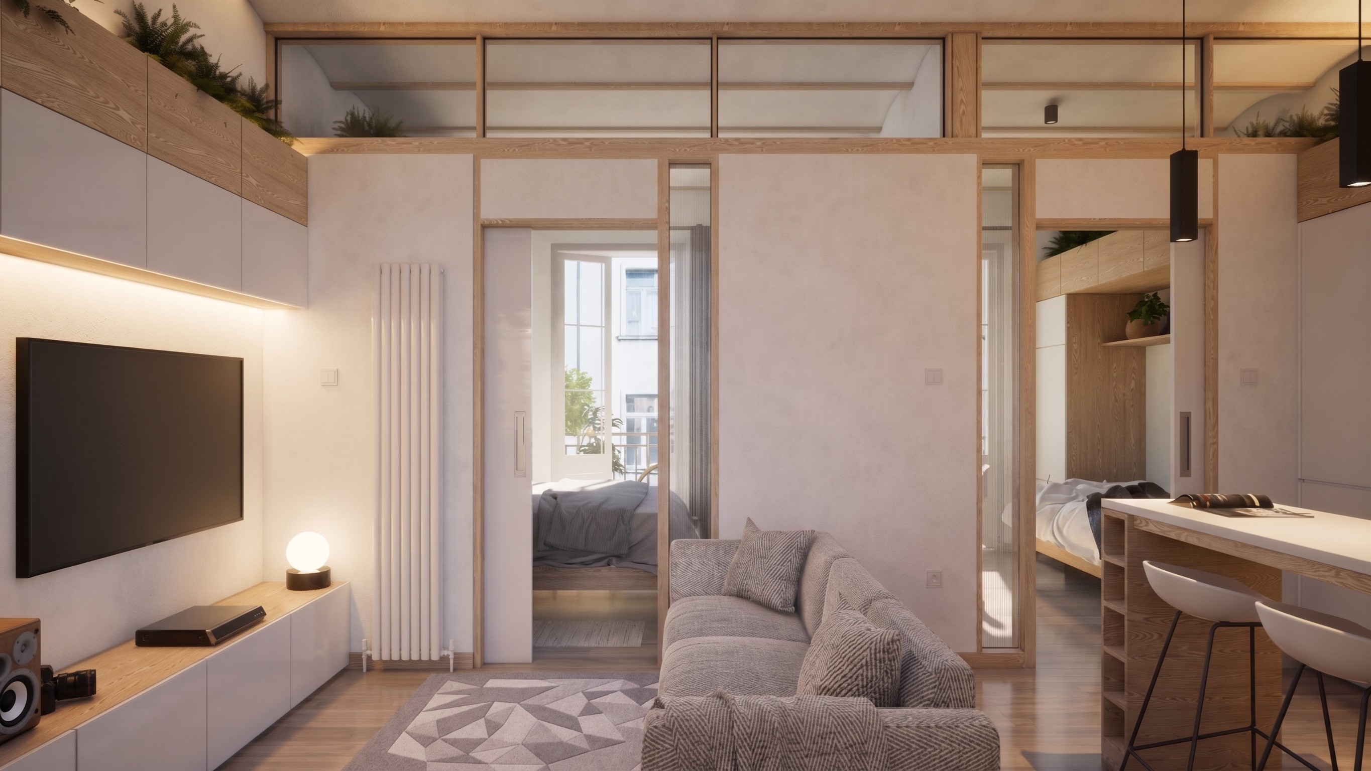 Renovation of a two-bedroom apartment in the Poble Sec neighbourhood of Barcelona. The existing flat was constrained and dated, with poor natural light reaching the central living spaces. Rather than pursuing structural complexity, V+D identified a series of quiet, precise interventions: a redistribution of rooms to improve spatial logic, the revelation of an original Catalan vaulted ceiling that had been concealed for decades, a new clerestory window to draw daylight deeper into the plan, and textured semi-opaque sidelights to the bedroom pocket doors that allow light to filter through the apartment whilst maintaining privacy. The result is a home that feels genuinely transformed — proof that the simplest solutions are often the most effective.