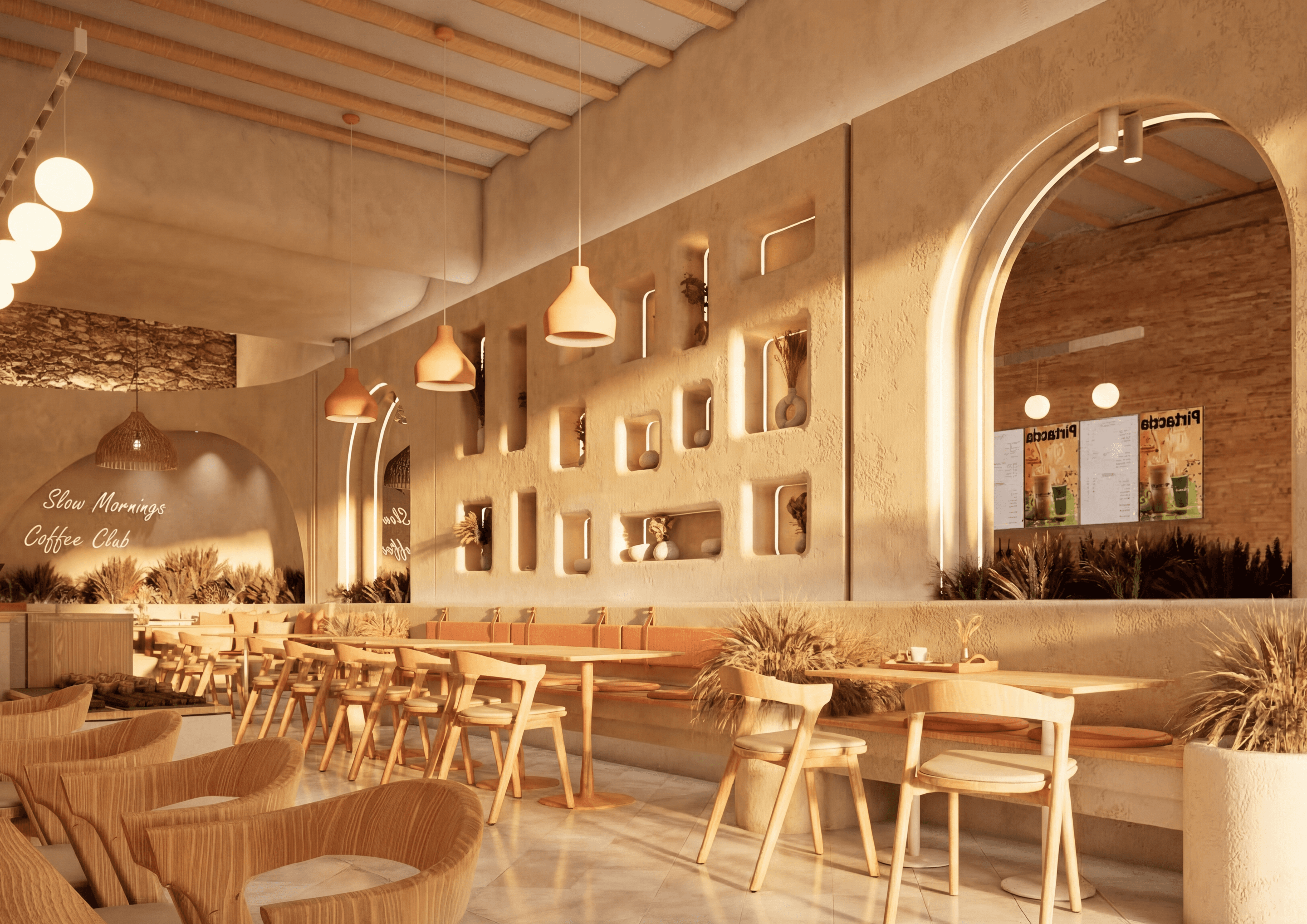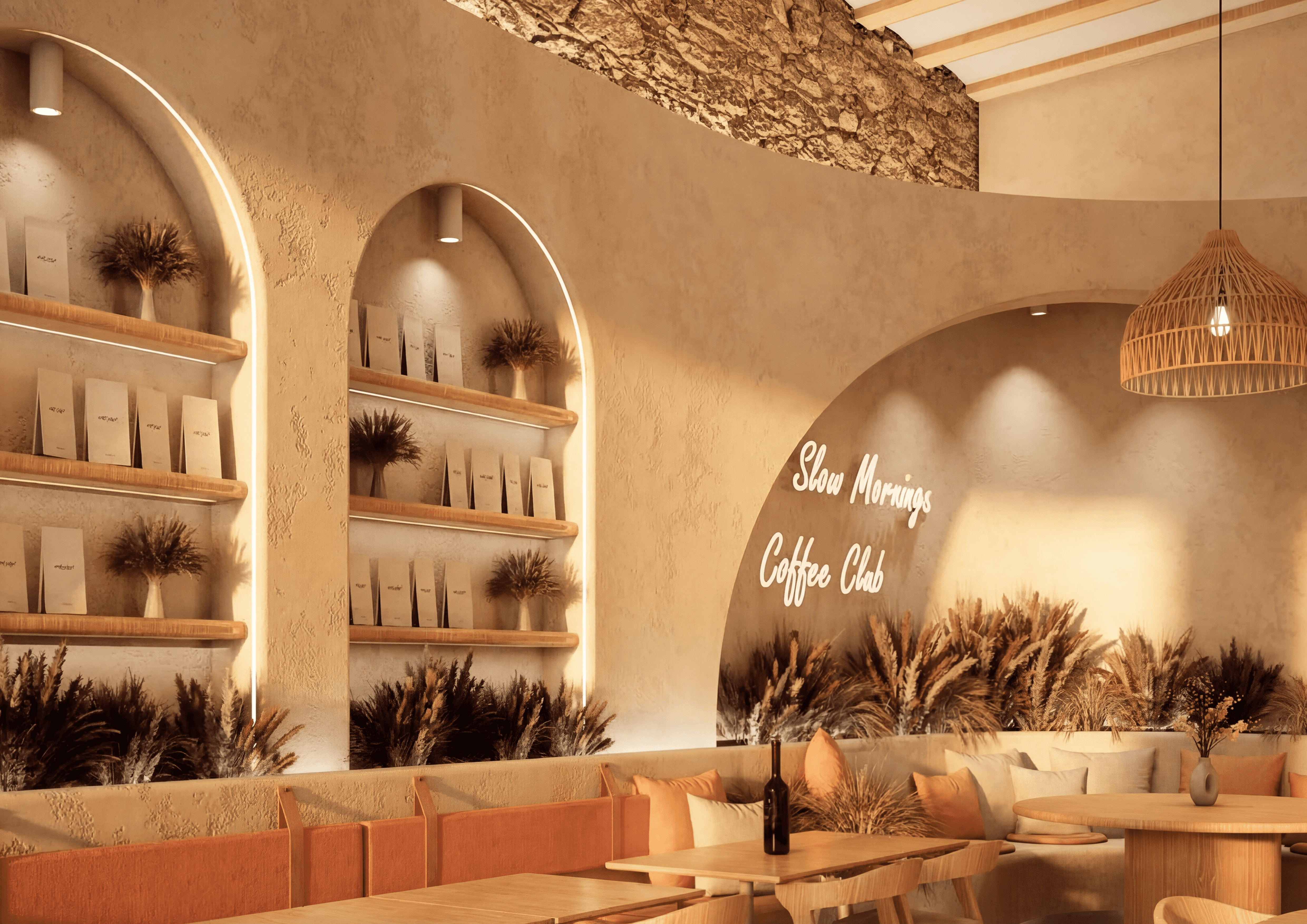 Brand evolution and interior design for the expansion of a Barcelona hospitality brand into a new all-day brunch concept, building on a long-term creative relationship with the client. The commission spanned visual identity — evolving an established brand whilst clearly signalling a new direction — through to comprehensive interior and spatial guidelines covering materials, lighting, service flow, and counter design. A first unit was designed and documented in parallel, with scanning, 3D modelling, technical drawings, and visualisations produced entirely in-house. The result is a coherent design language ready to be rolled out consistently as the brand continues to grow.